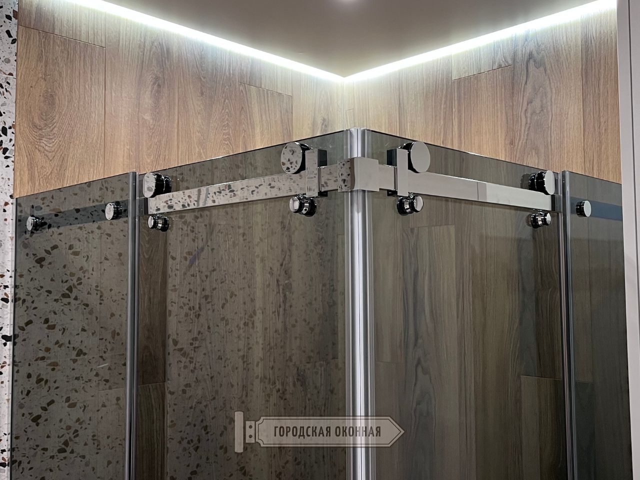 Кабінкою прийнято називати конструкцію з двох і більше сторін, розташованих під кутом стосовно один одного. При цьому примикання до стіни може бути реалізовано не тільки під прямим кутом. Базове рішення з примикання - це металевий конектор із полірованої нержі або сплаву з товщиною стінки від 4 до 5 мм. Аналогічно, вся нами застосовувана фурнітура під цю товщину скла є досить потужною, що забезпечує їй перевагу за жорсткістю та тривалий термін служби. Її кріплення та системи були розроблені для надійної фіксації скла між собою та монтажу в кутку приміщення.