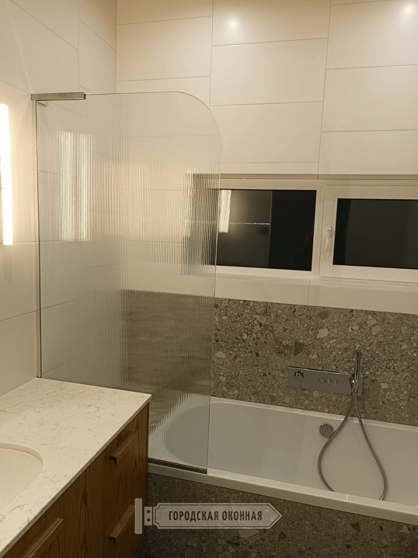 Прості конструкції з одного скла, що розміщуються на підлозі або безпосередньо на ванній як заслін від води, прийнято називати душовою «шторкою». При обладнанні трапу в підлозі та відведенні зони для душу такий виріб буде найбільш комфортним, якщо габарити ванної кімнати досить великі. Це максимально «повітряний» та мінімалістичний варіант. Ідеально підходить для приватного будинку. Головне, це успішно спрогнозувати обсяг води, що розбризкується!