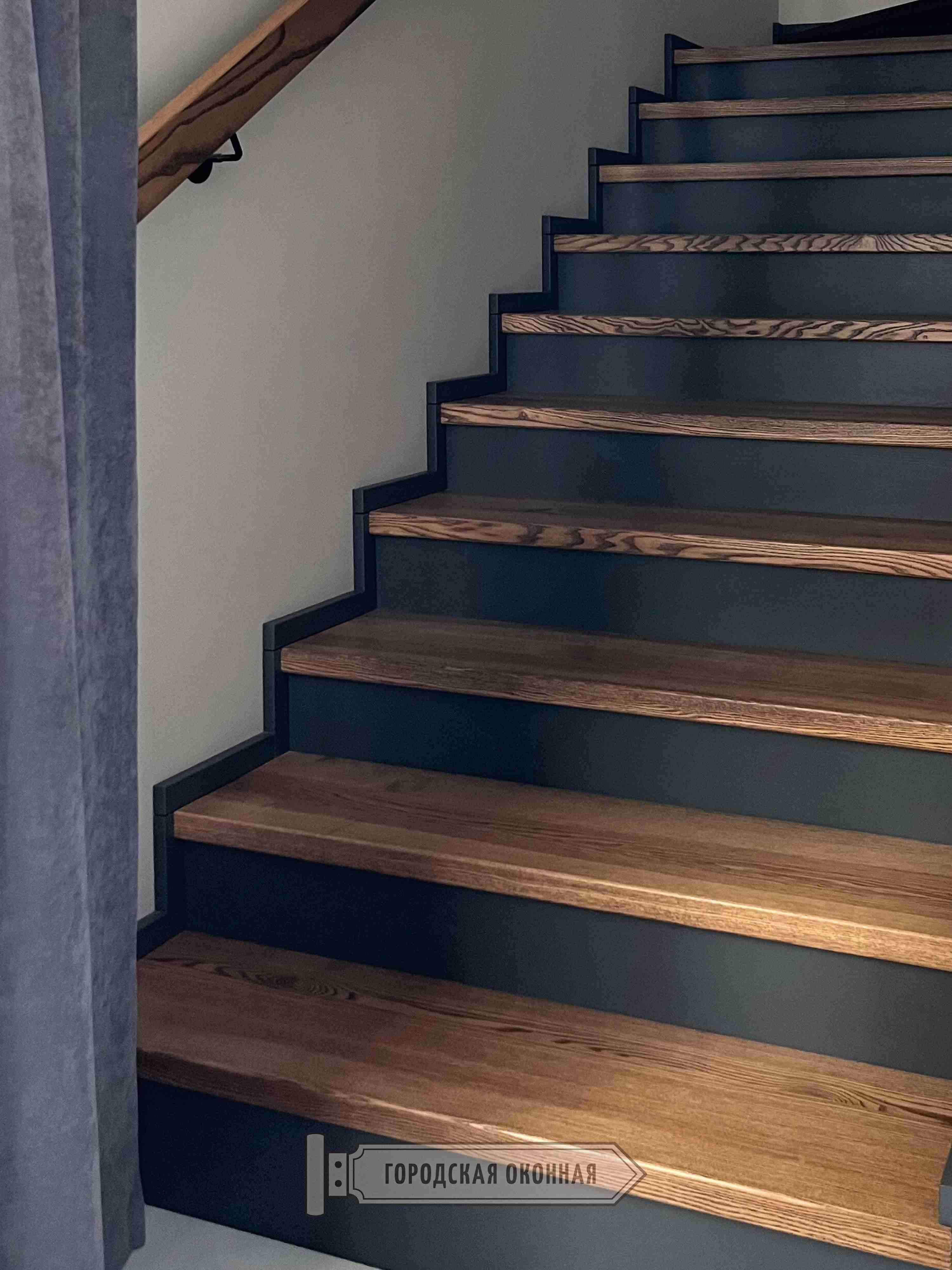 Повне обшивання деревом це реалізація так званих закритих сходів. В закритих сходах уся тримальна конструкція закривається оздобленням з деревини або мармуру. Існують 2 основних варіанти їх несучої основи: армований бетон або металокаркас. Для сходів підходять тільки тверді породи деревини. Технологічний процес створення щитів з дерев'яного масиву трудомісткий і кропіткий. Ми гарантуємо стабільність наших сходинок! А це відсутність тріщин і деформацій протягом усього періоду експлуатації. І це основна відмінність сходинок, виготовлених з добірної сировини (ясен, дуб) кваліфікованими майстрами за індивідуальним замовленням. Заводські сходинки з гіпермаркету, що не пройшли фази сушіння згідно з технологією, здатні вас сильно розчарувати з плином часу.