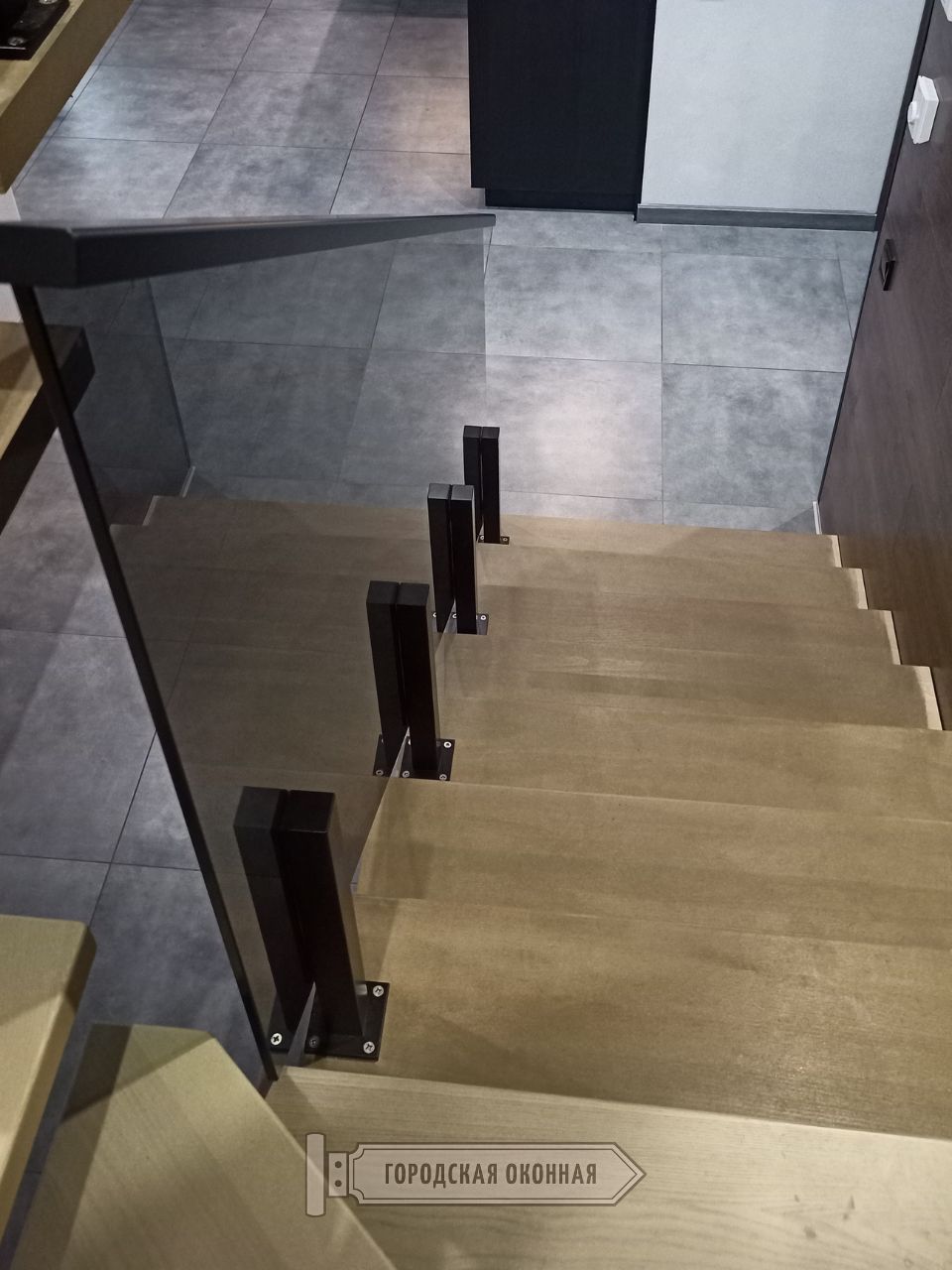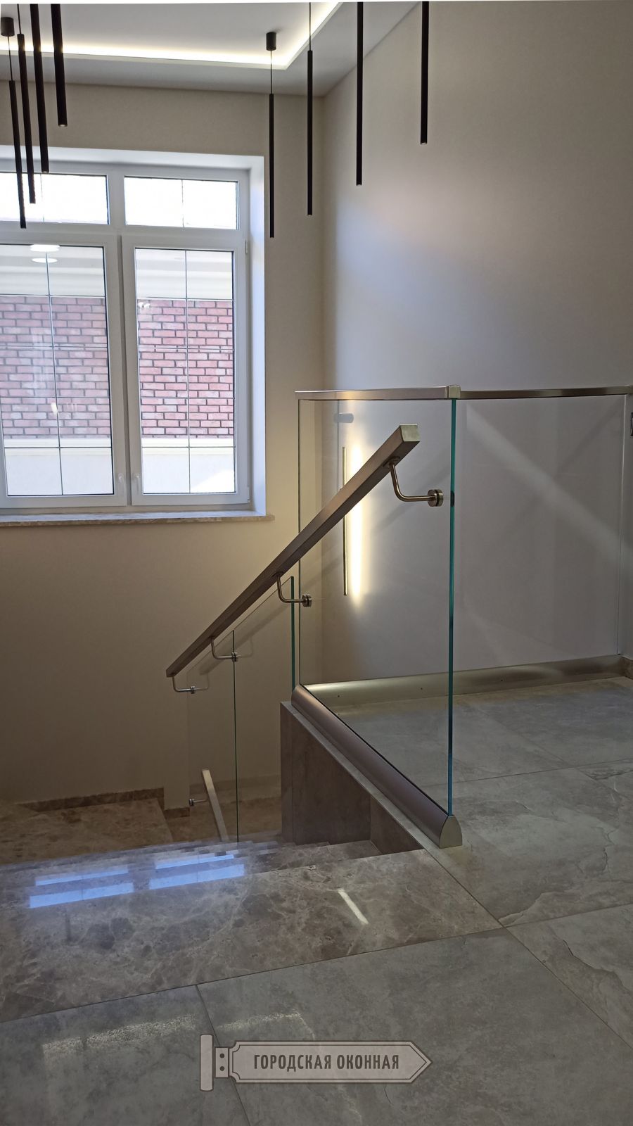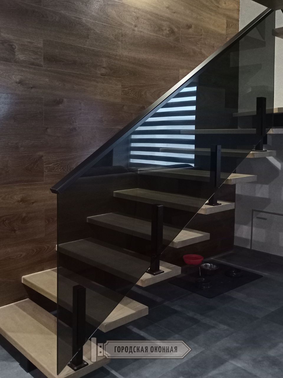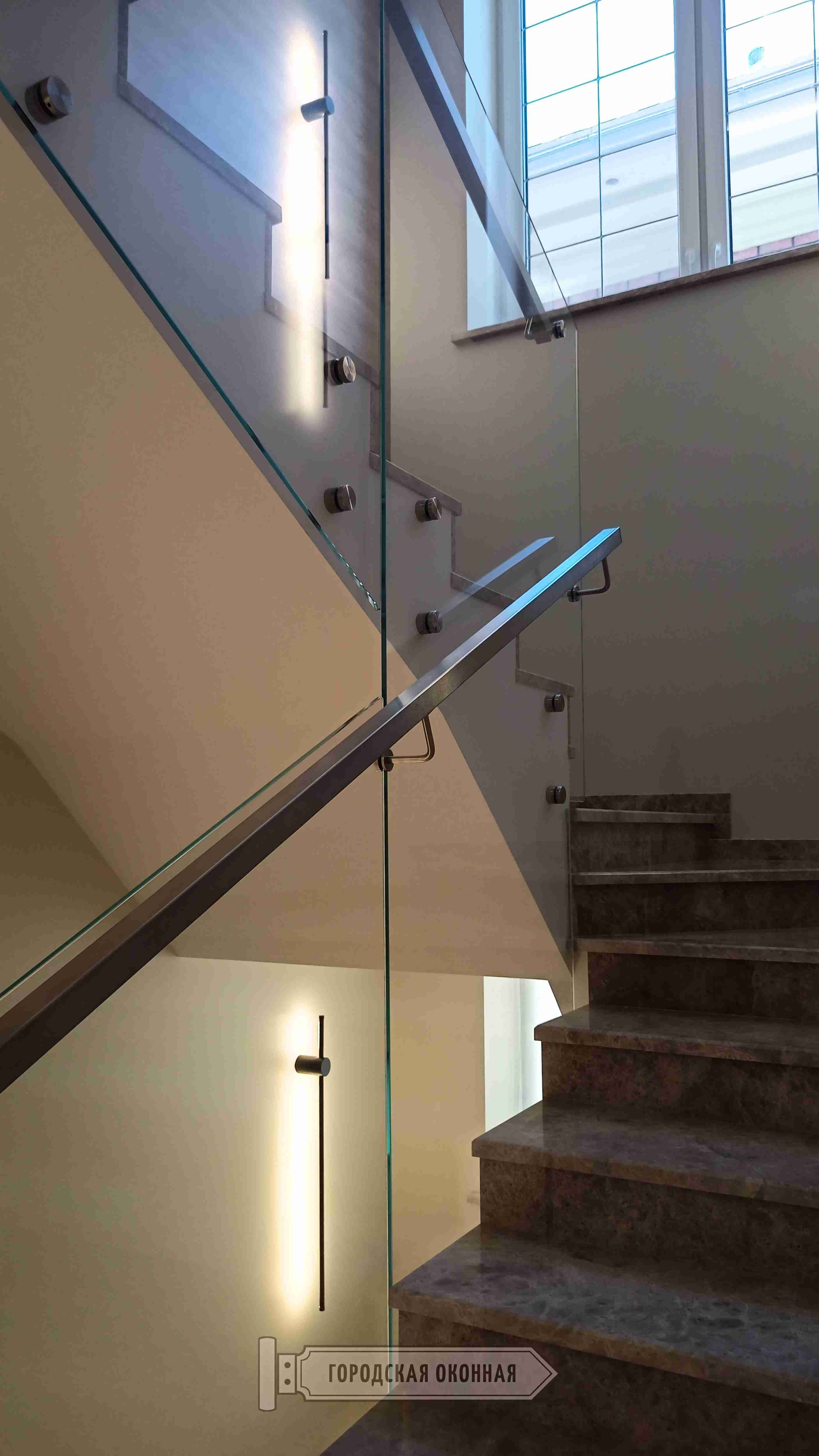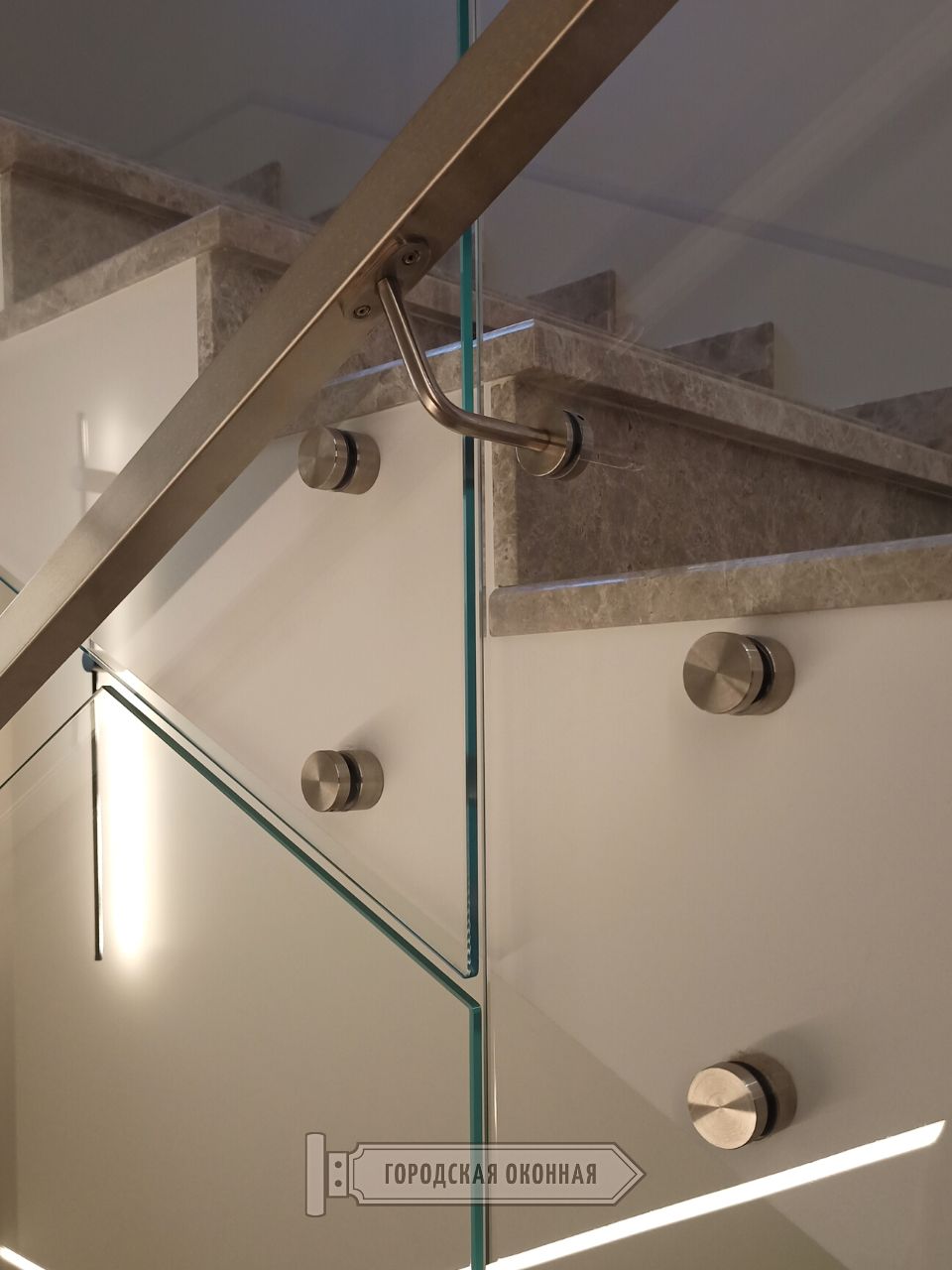 Важлива перевага скляних перил це прозорість конструкції. Сонячне світло безперешкодно проникає через захисні екрани сходів, створюючи легкий образ усього приміщення, не захаращеного сходами. Але також, якщо сходи компактні, і сприймаються вами виключно в стилі мінімалізму, то панелі із загартованого скла (товщина 10-12 мм), які виступають несучим елементом з монтажем збоку, утворять потрібне відчуття легкої, але все ж таки міцної та надійної, конструкції огорожі.