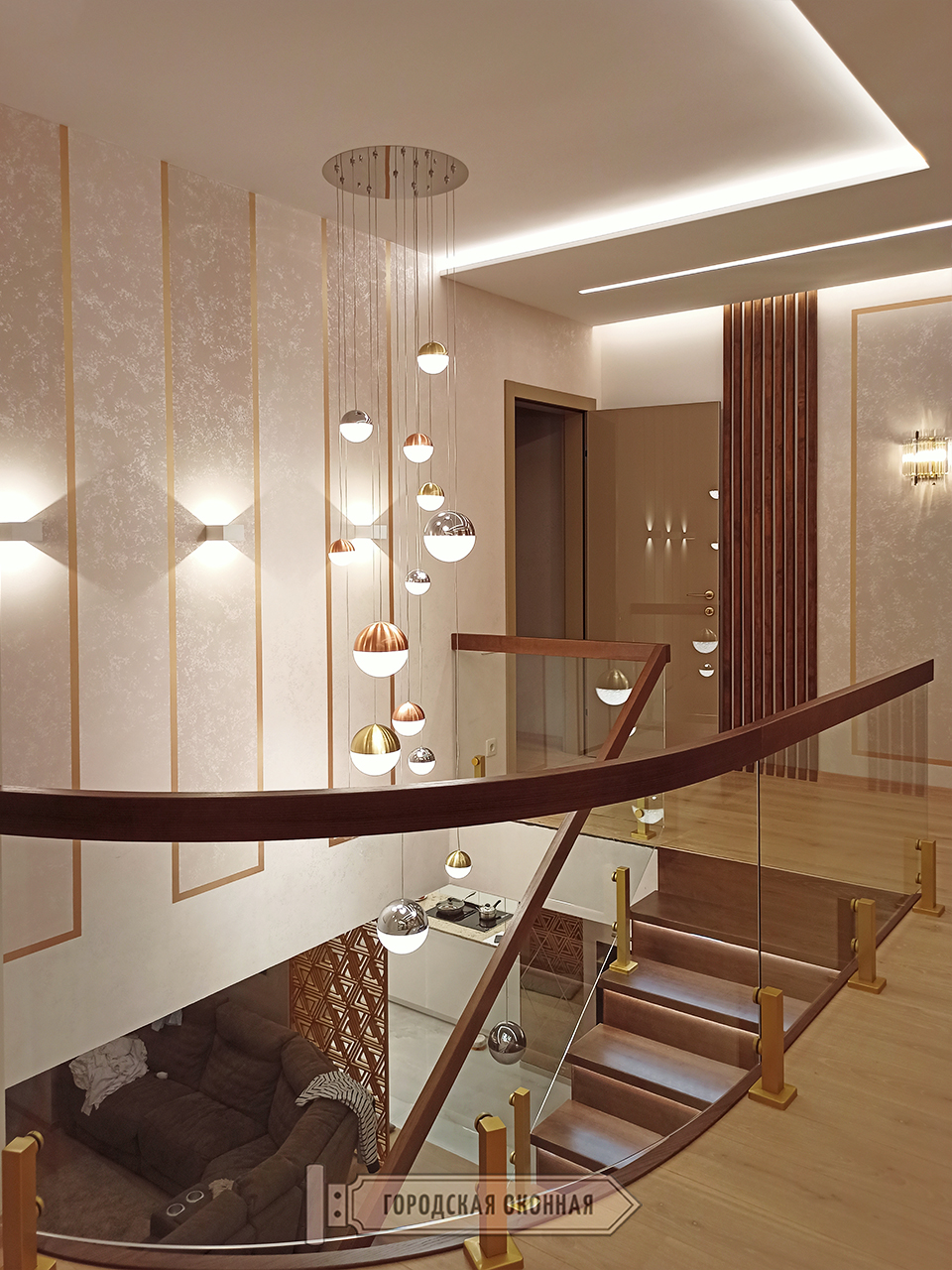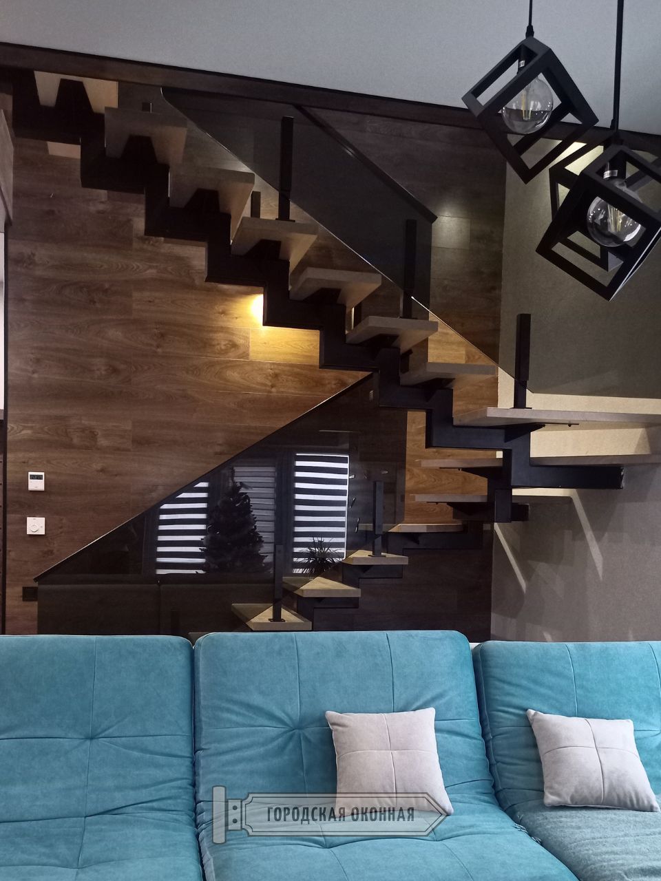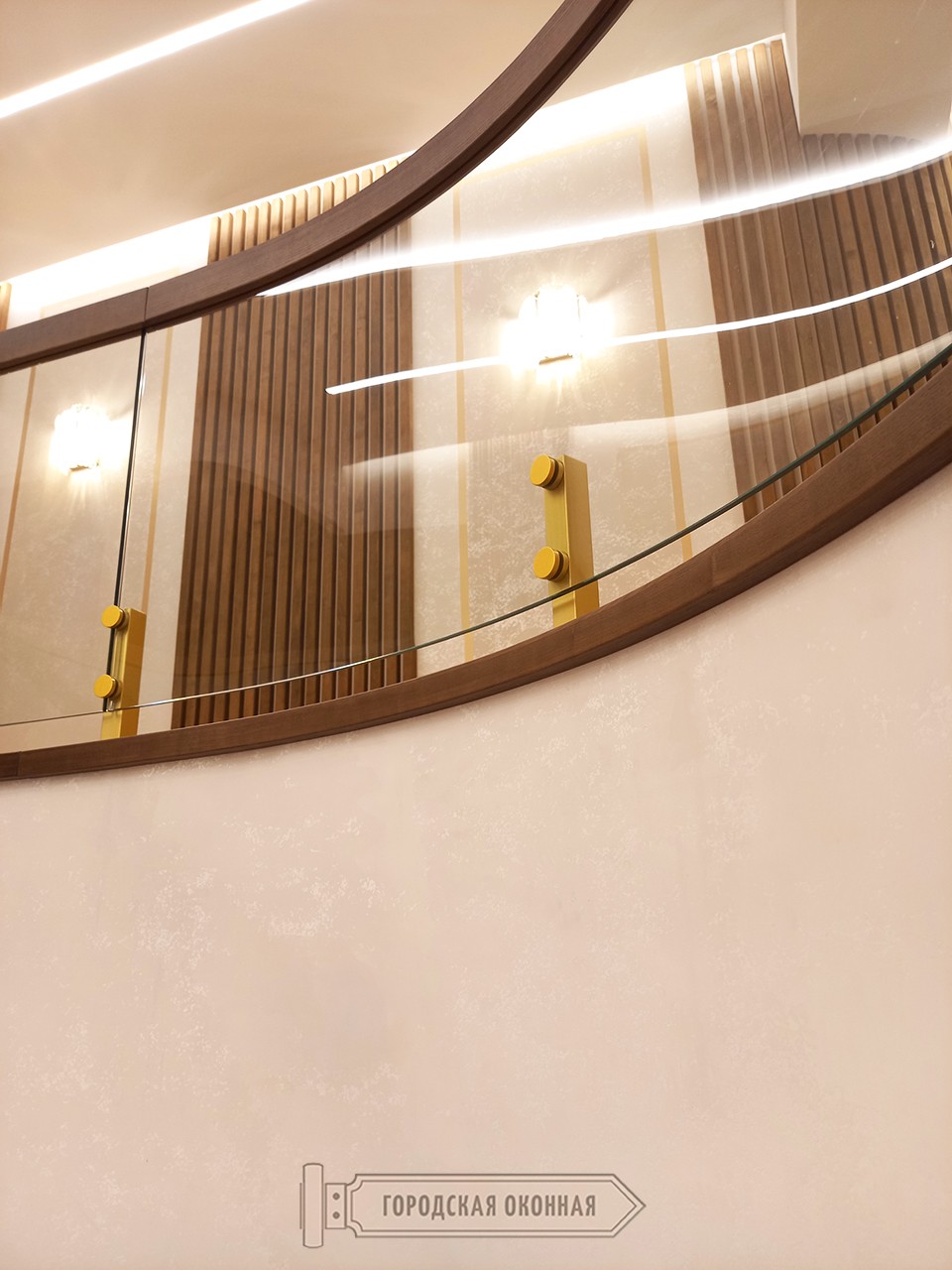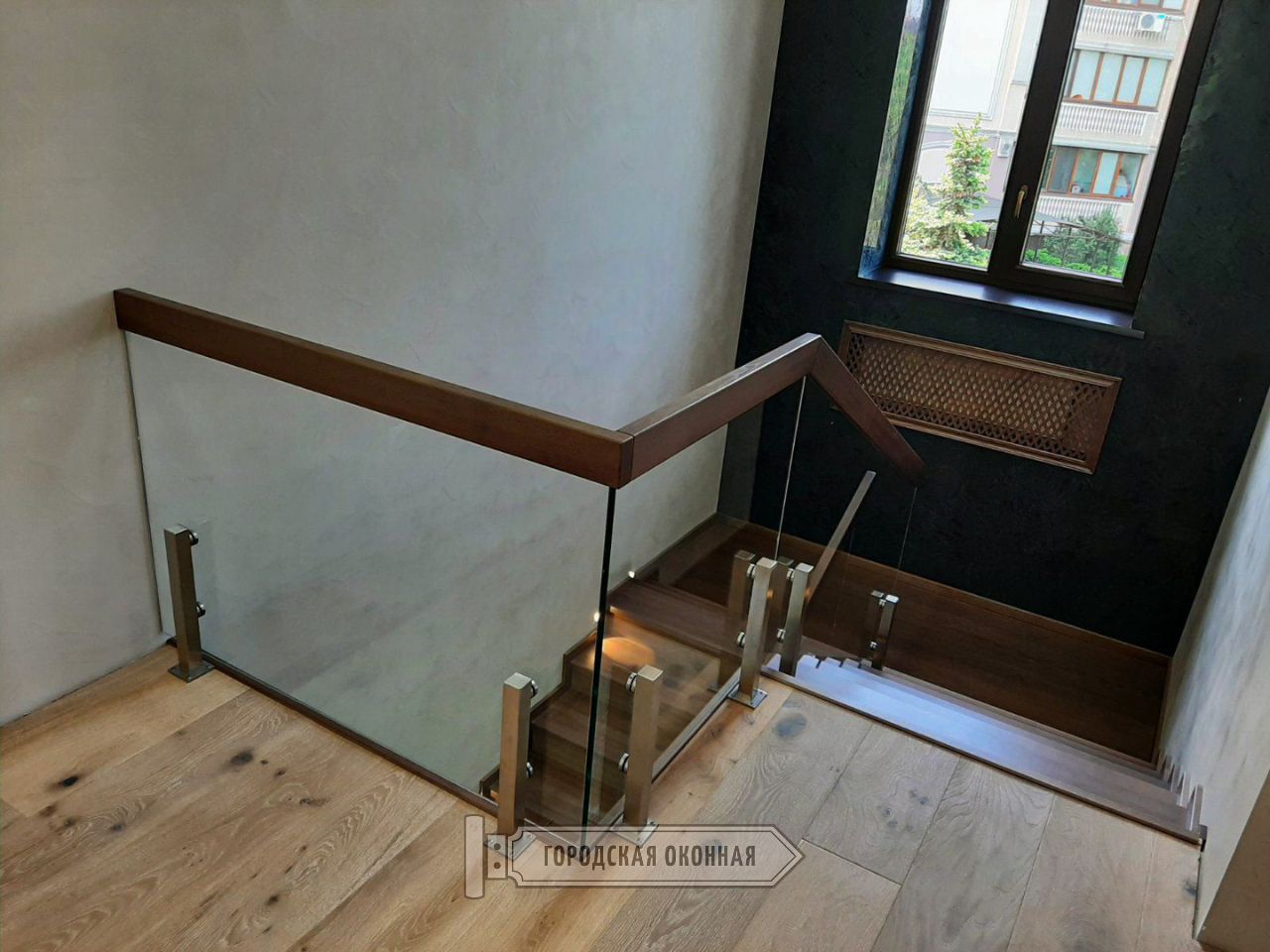 Важлива перевага скляних перил це прозорість конструкції. Сонячне світло безперешкодно проникає через захисні екрани сходів, створюючи легкий образ усього приміщення, не захаращеного сходами. Але також, якщо сходи компактні, і сприймаються вами виключно в стилі мінімалізму, то панелі із загартованого скла (товщина 10-12 мм), які виступають несучим елементом з монтажем збоку, утворять потрібне відчуття легкої, але все ж таки міцної та надійної, конструкції огорожі.