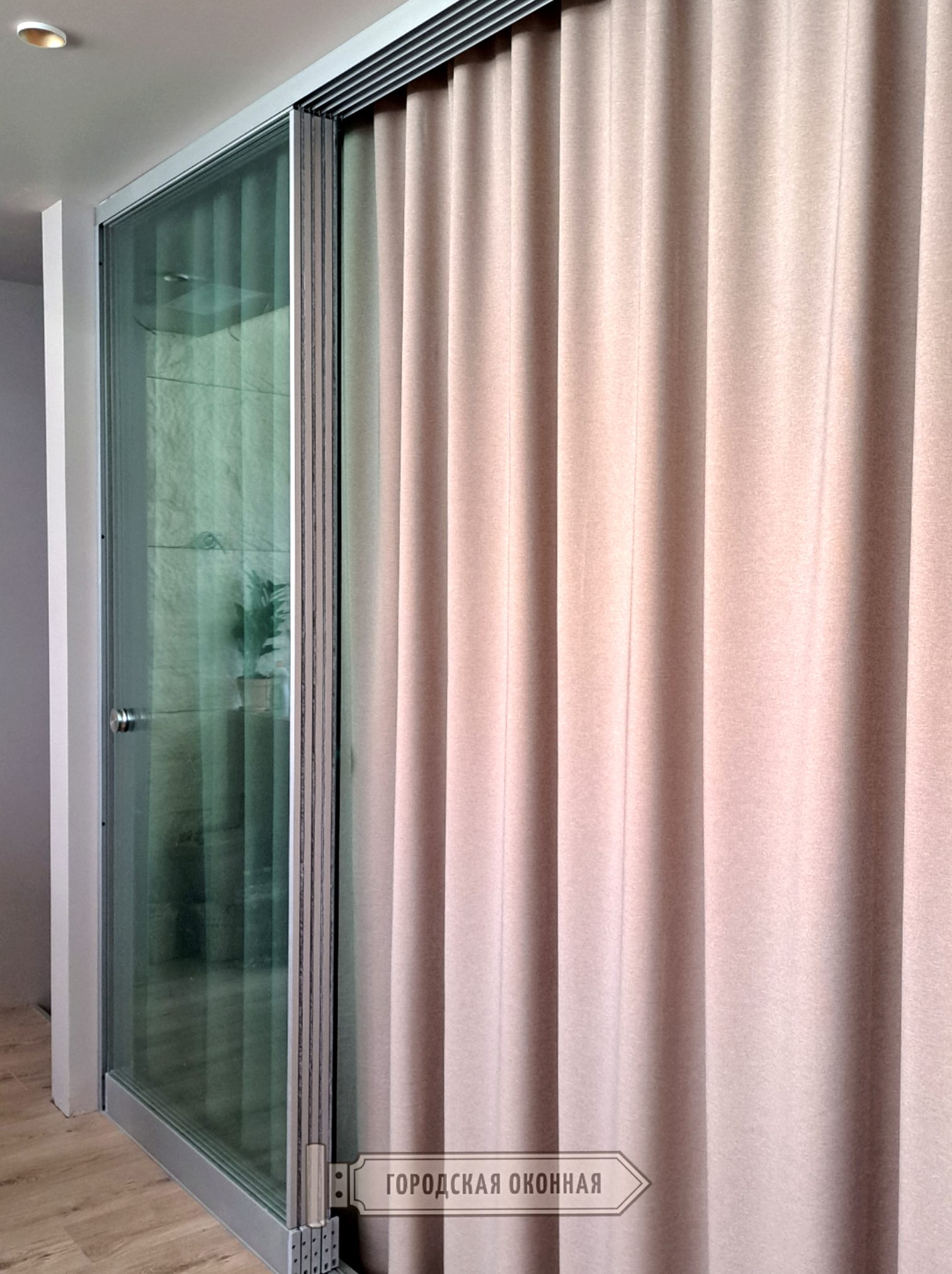 СКЛАДНА система для перегородок зі скла здатна задовольнити найвимогливіших замовників з тонким естетичним смаком і сформованим уявленням про конструкцію. Цю розсувну систему застосовують, коли потрібне повне відкриття прорізу, але відсутній простінок, куди можуть засуватися двері. Система відмінно впишеться в інтер'єр заміського будинку або квартири студії.