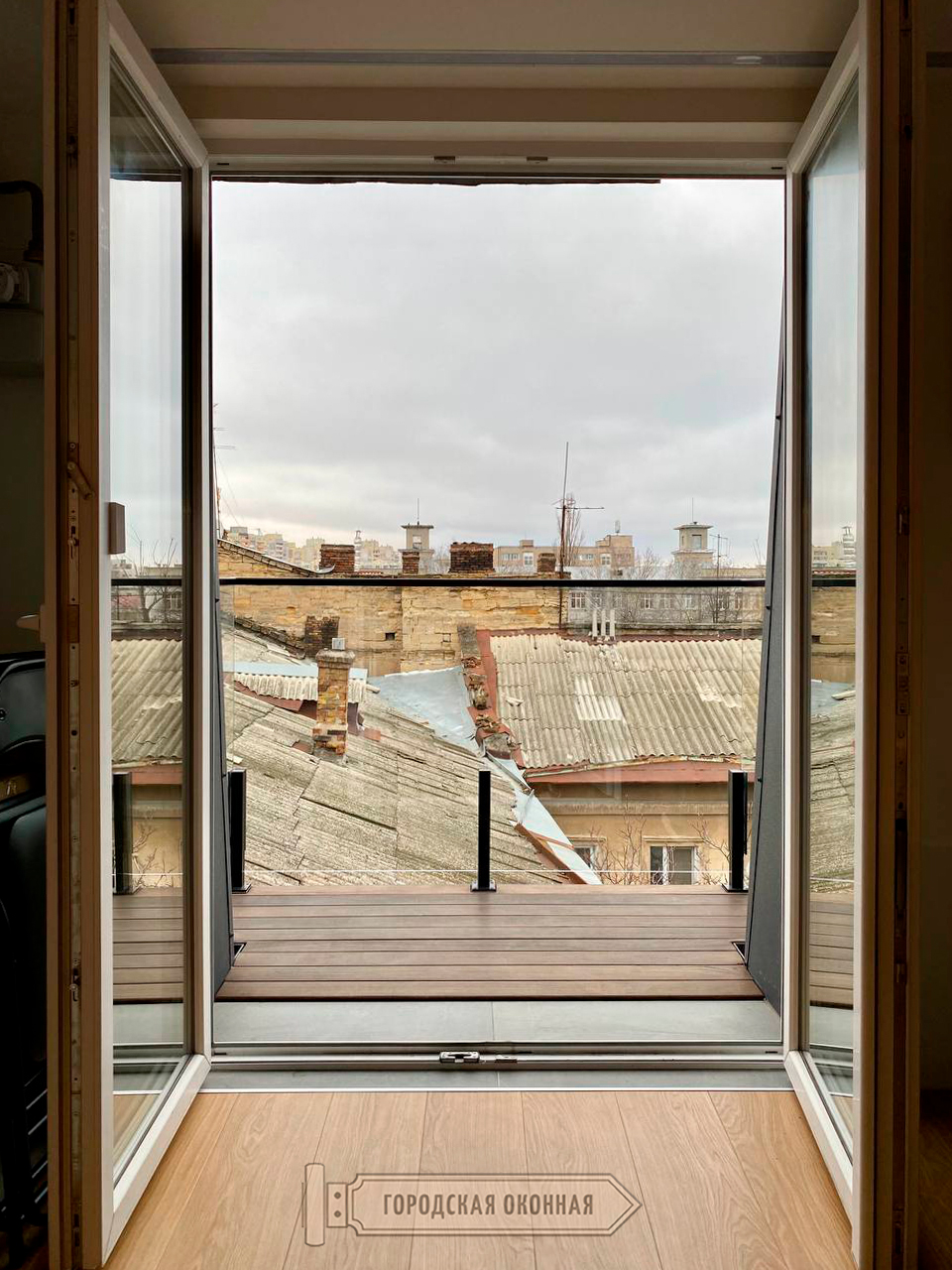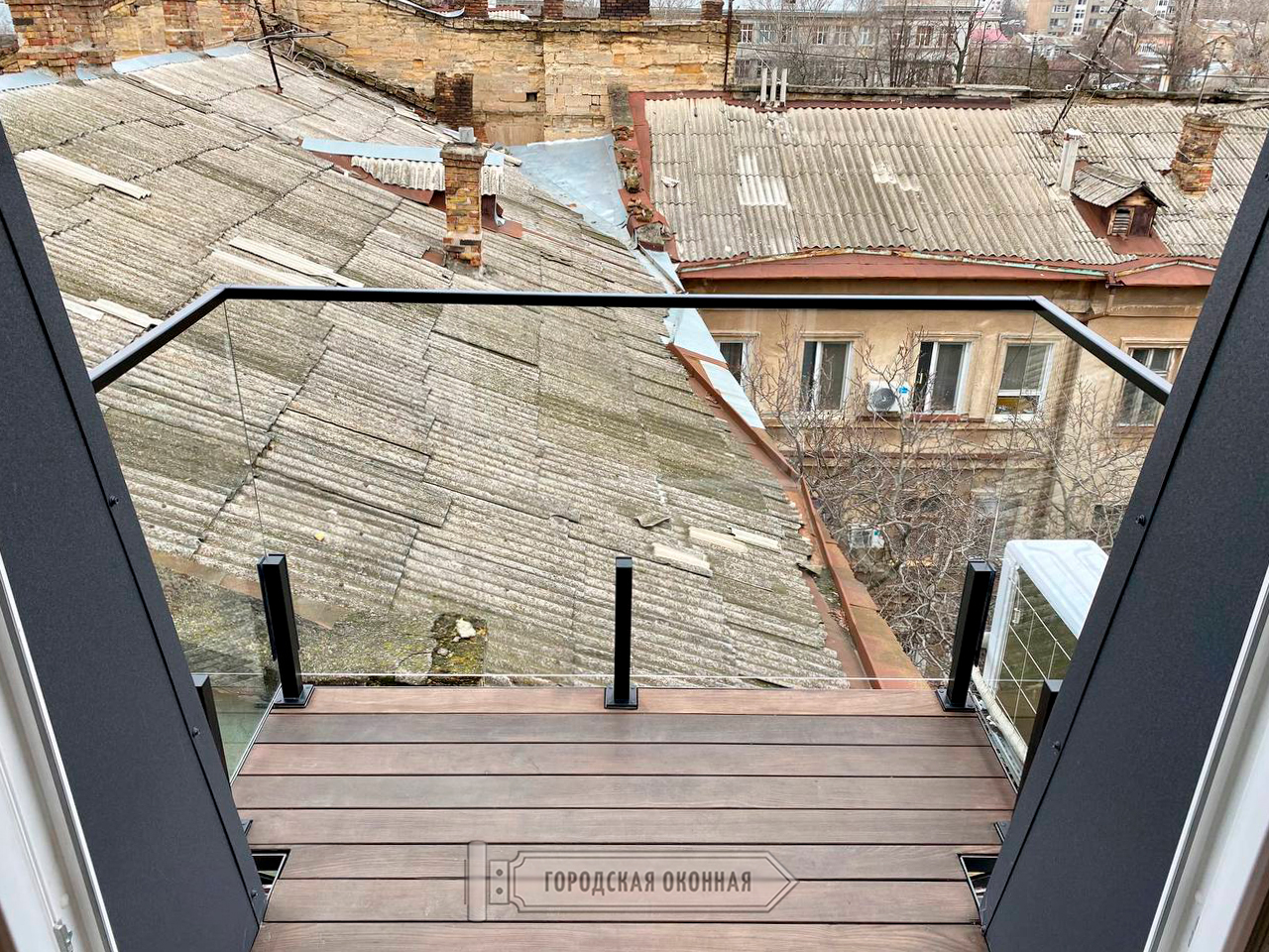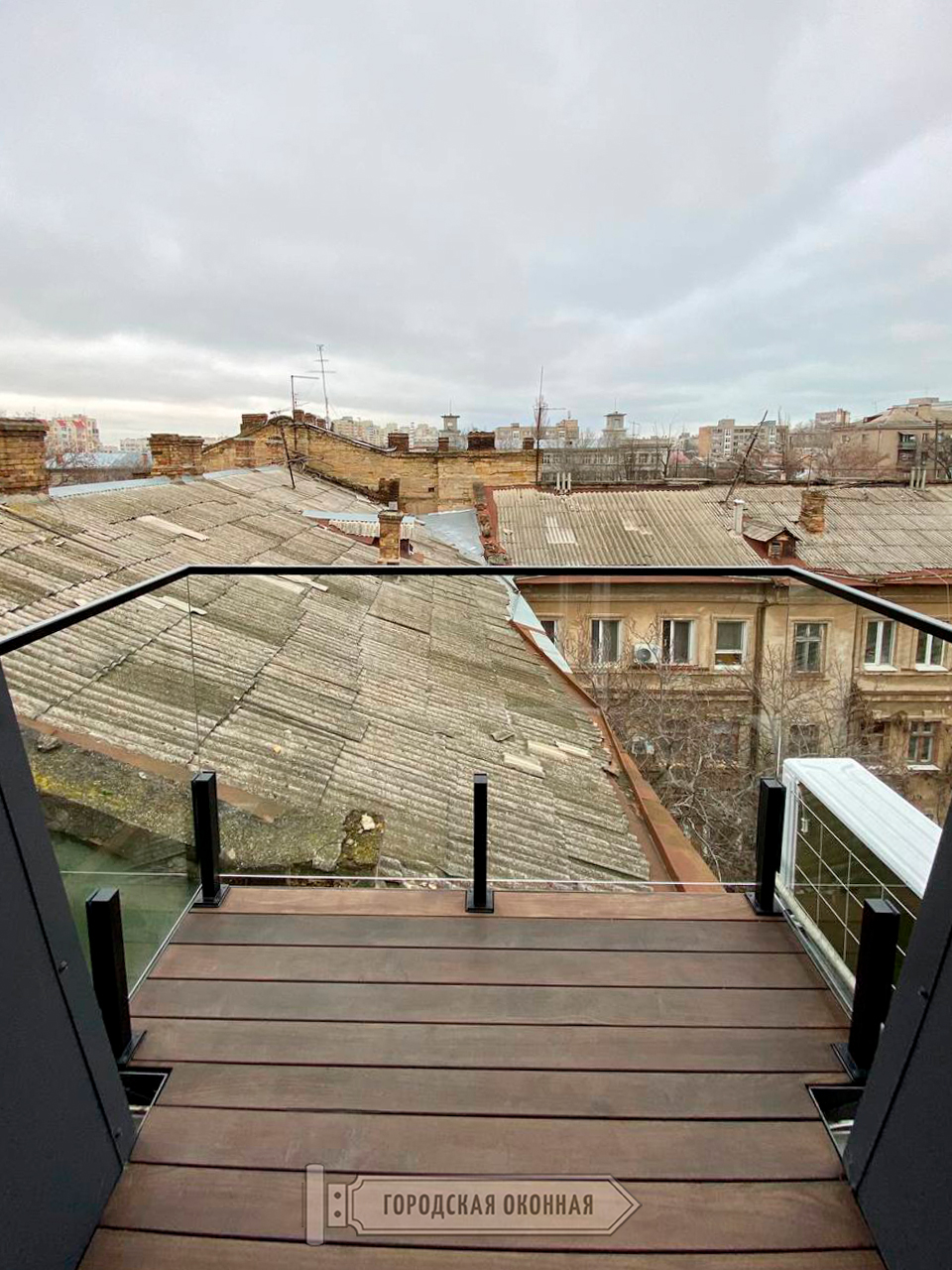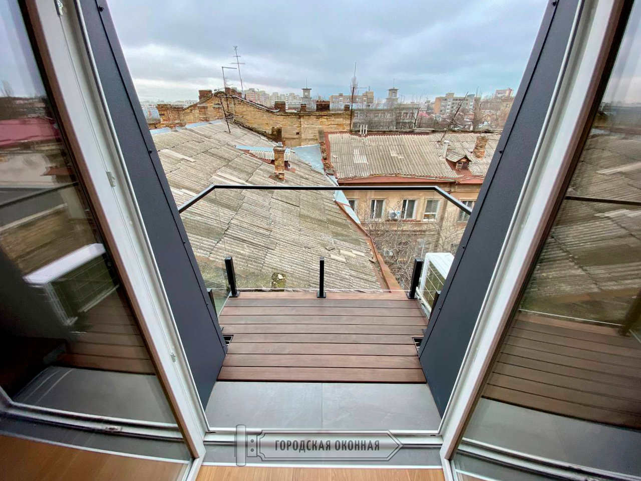 Відмічаємо, що терасна дошка, встановлена на балконі, також від нашої компанії. Вона виготовлена з термоясеню і це дуже модно та натурально. Про особливості на сторінці тут.